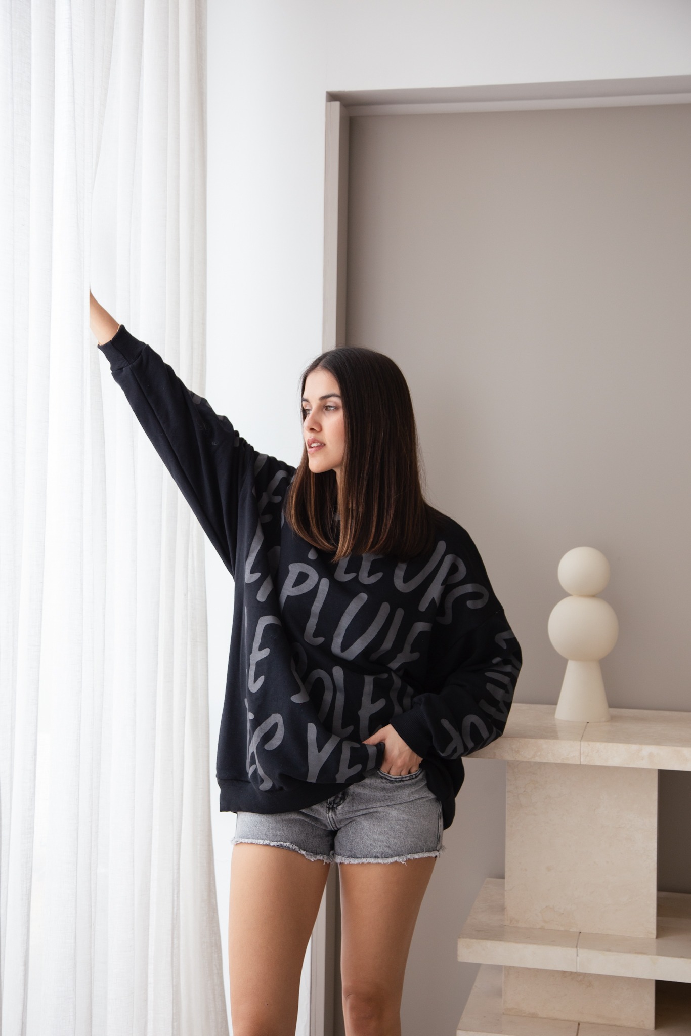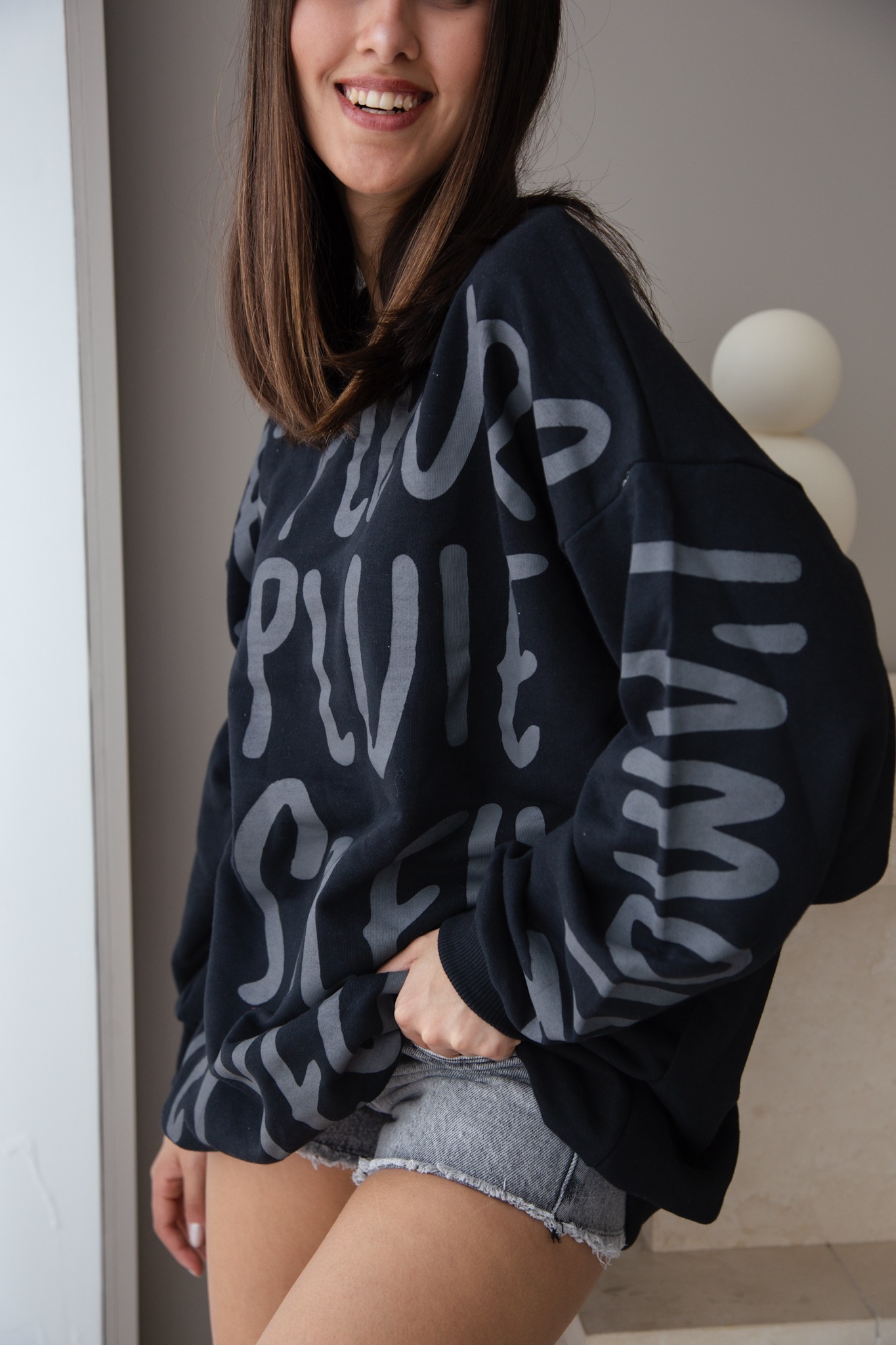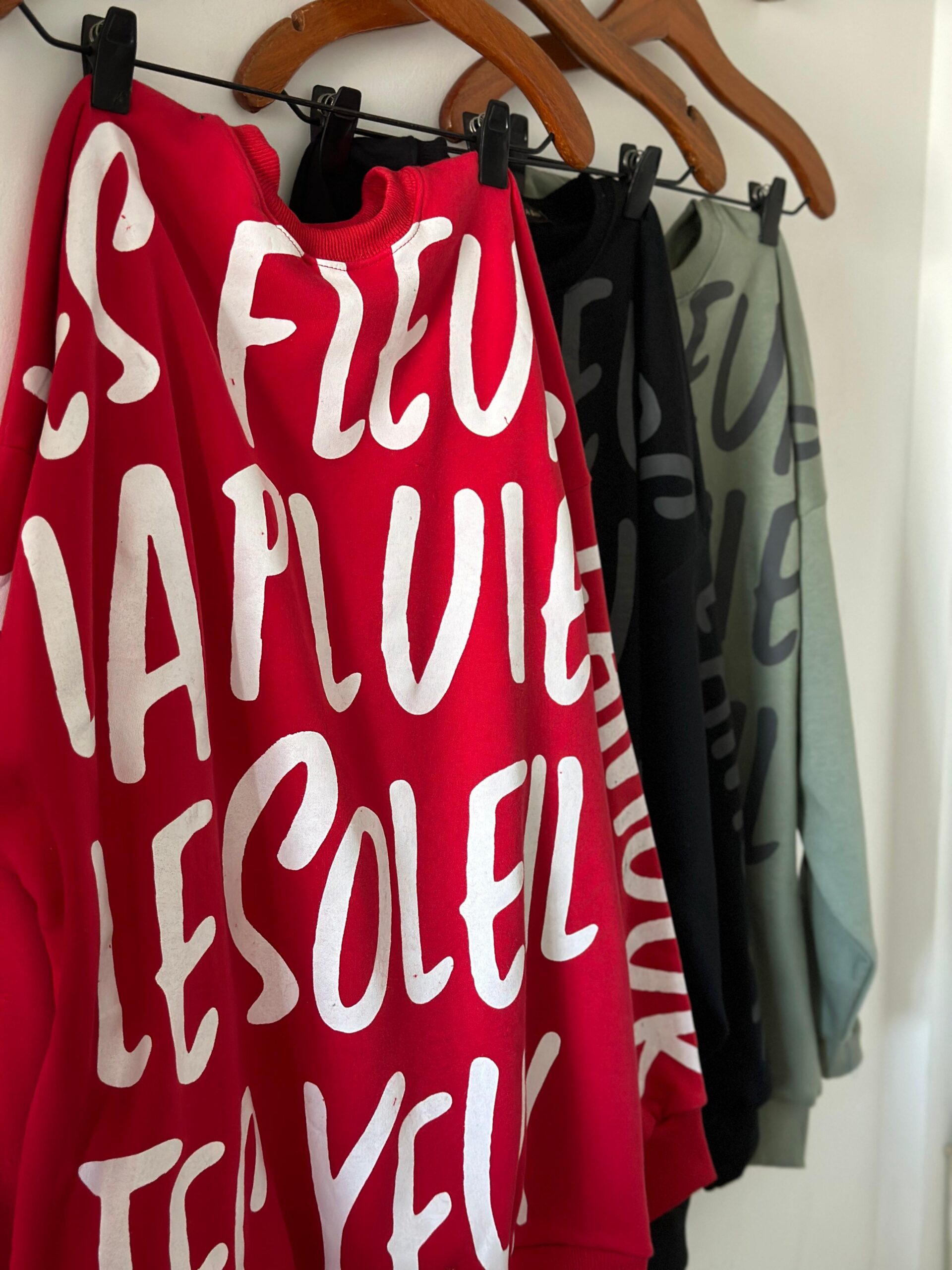 Buzo de algodón rústico corte amplio y con una estampa full con palabras francesas. Super copado y muy bello!