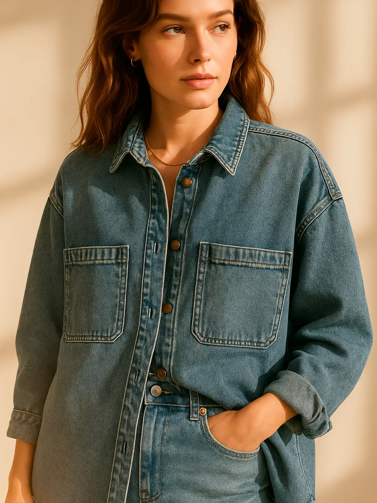 Camisaco de jean con bordado que aporta personalidad y estilo. Canchero, cómodo y con carácter propio.
